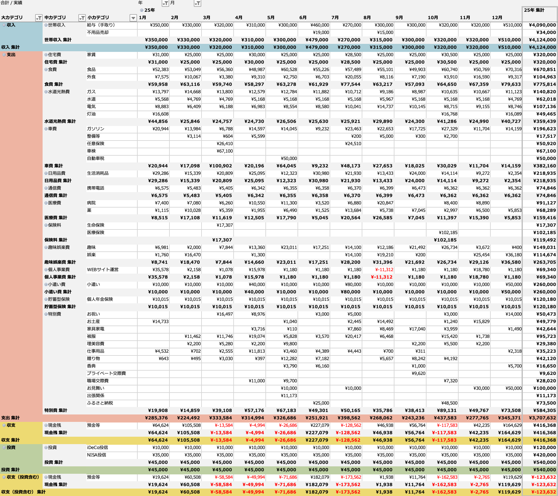 それとこれは副次的な効果ですが、我家は自分仕様のテンプレートに仕上げることができたおかげで、家計管理のモチベーションがあがりました。