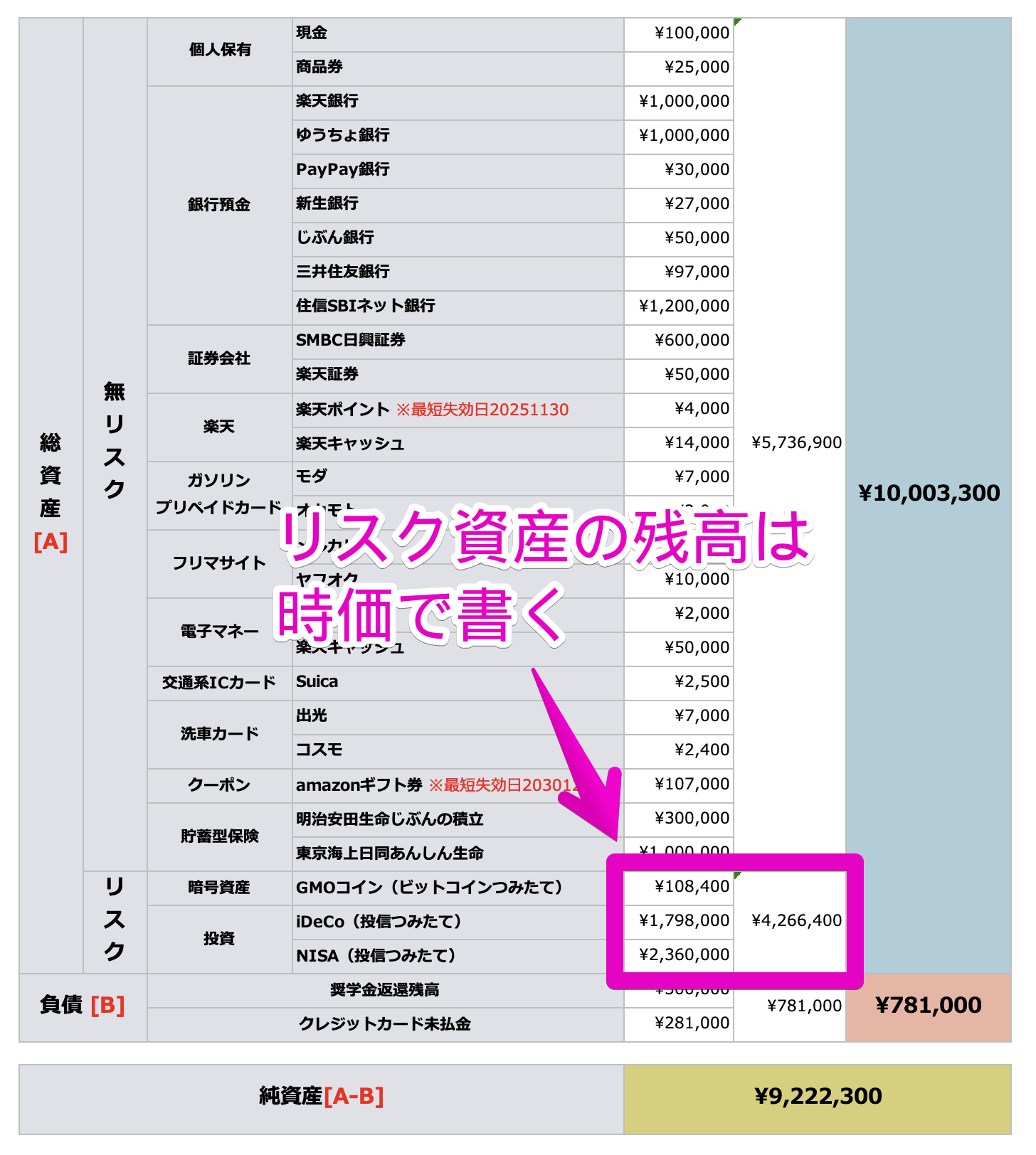 【ポイント④】リスク資産の残高は時価(評価額)で書く