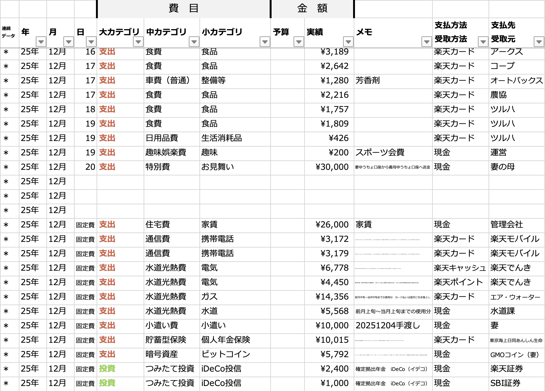 参考までに我家の一年分の収支データは2千行くらいであり、10年以上同じ入力シートに入力し続けてきました。