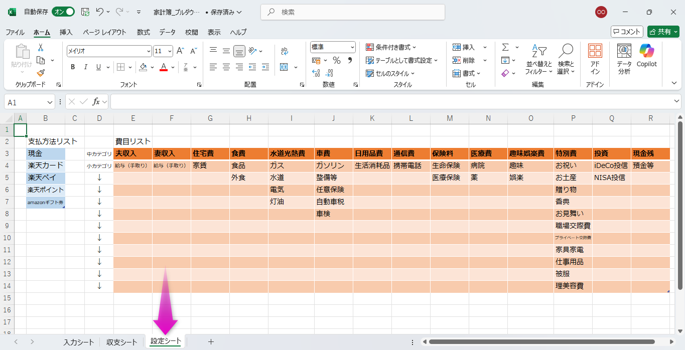 我家のテンプレートを使う上で、最低限必要なシートは以下の2枚です。