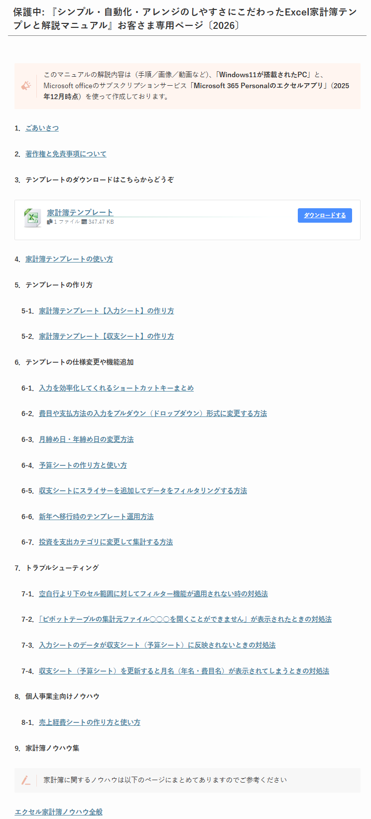 【Excel家計簿教材セット】シンプル・自動化・アレンジのしやすさにこだわったテンプレートと解説マニュアル