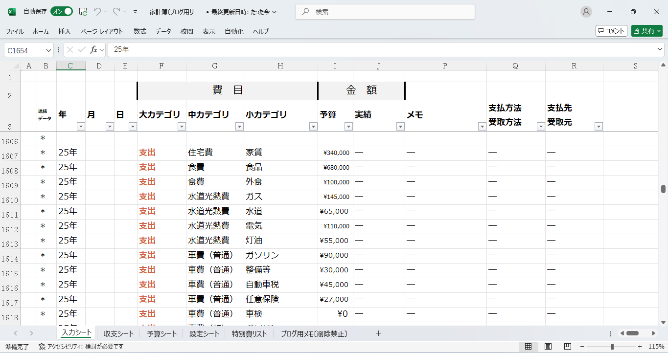 当初、家計簿は収支シートだけで十分だと思っていたんですが、最近は予算管理も行うようにしています。