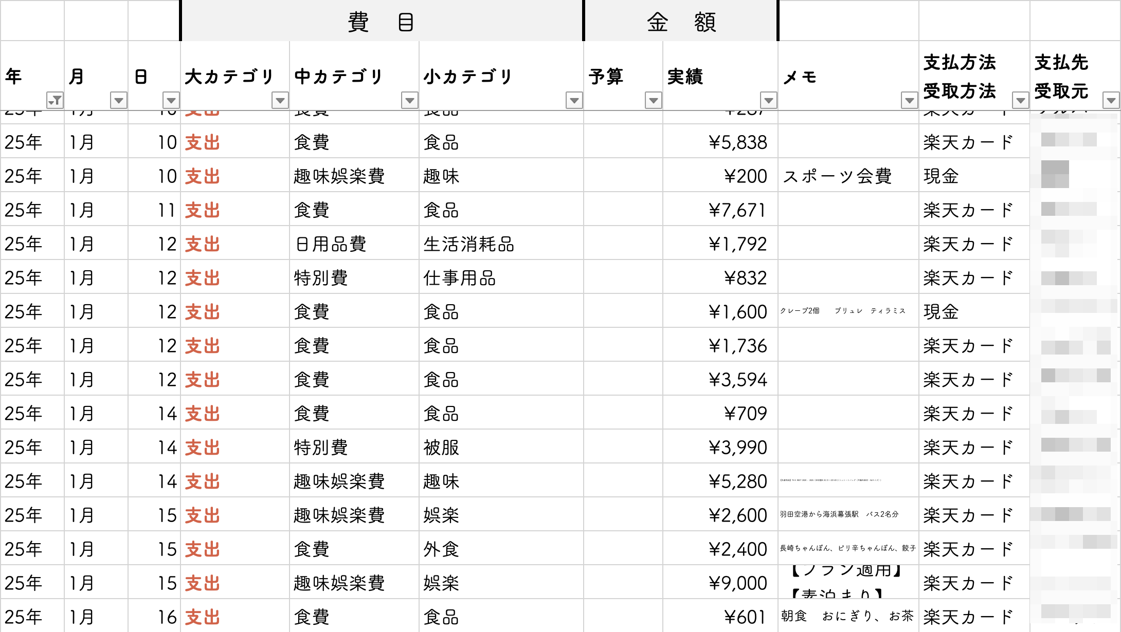 先ほどご紹介した入力シートをみての通り、家計データの入力は非常にシンプルです。
